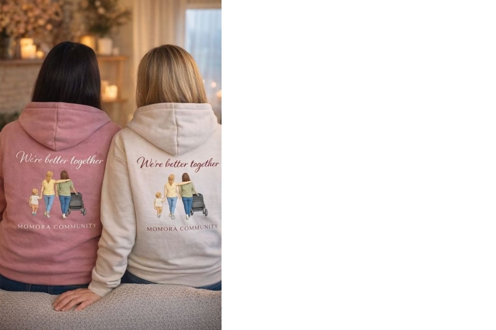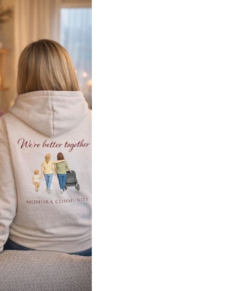 Unsere Hoodies stehen für das, was Momora ausmacht: Nähe, Zusammenhalt und das Gefühl, nicht allein zu sein. Jeder Hoodie erinnert daran, dass hinter dir eine Community steht, die ähnliche Wege geht. Wenn du einen Hoodie möchtest, trag dich gern mit deinen Daten ein oder schreib mir einfach „Hoodie“ auf Instagram oder TikTok – ich sammle unverbindlich alle Anfragen für die erste Sammelbestellung.
